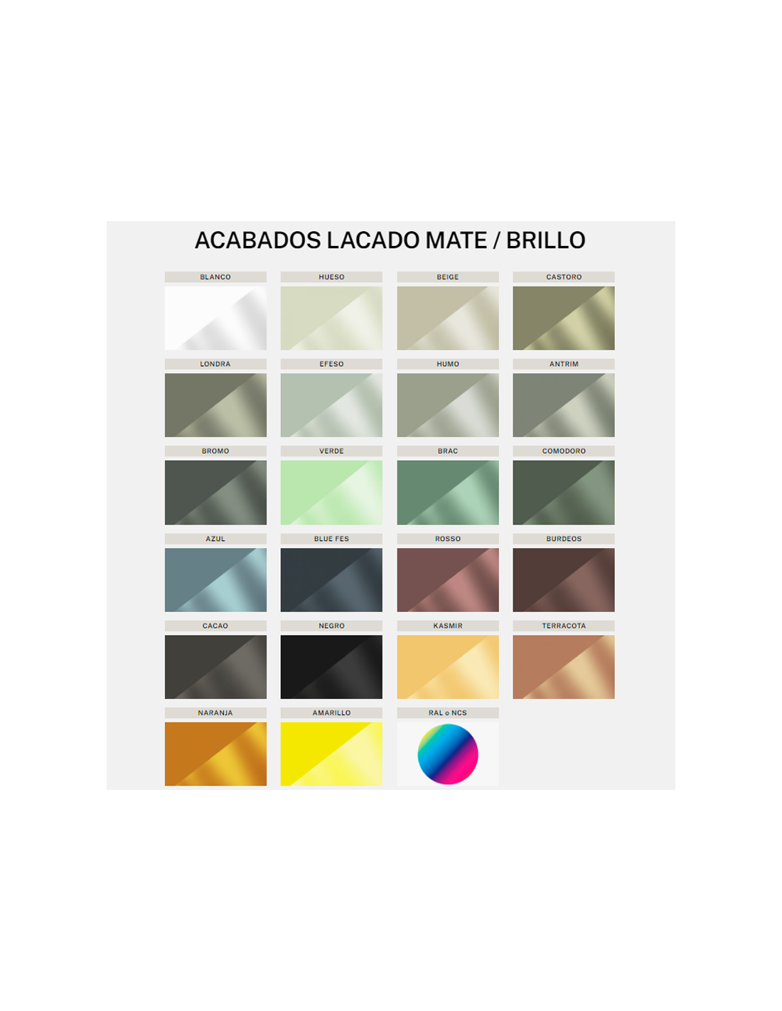 - Color a elegir: acabados laminados, laminado plus, laca o madera natural